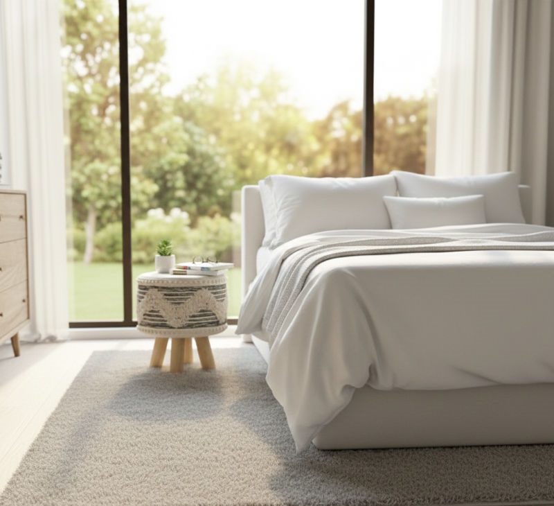 A Sensory Experience: The cool, solid feel of polished wood paired with the warm, organic texture of woven cotton.